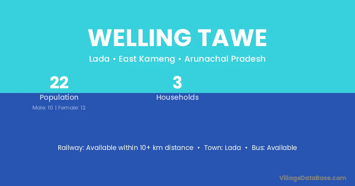 Welling Tawe village has a total population of 22 people, of which 10 are males and 12 are females.