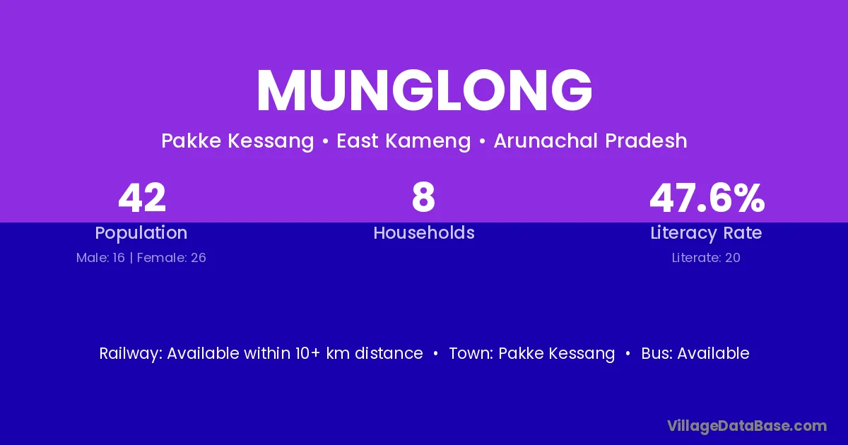 Munglong village has a total population of 42 people, of which 16 are males and 26 are females.