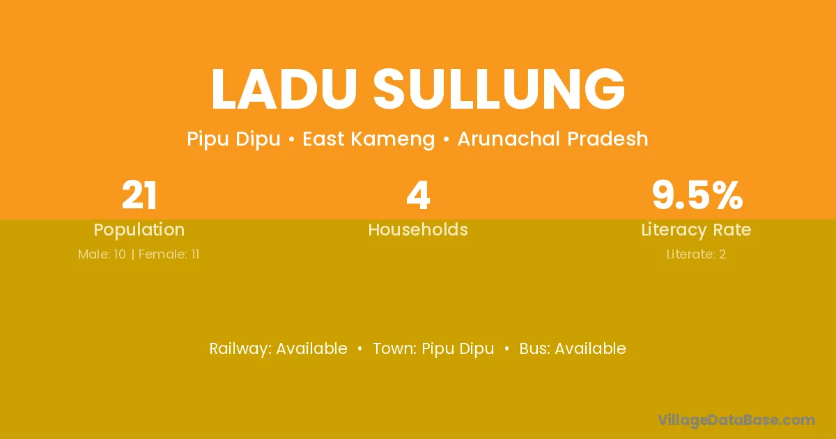 Ladu Sullung village has a total population of 21 people, of which 10 are males and 11 are females.