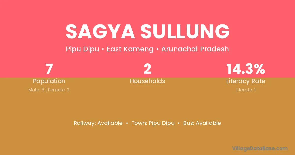 Sagya Sullung village has a total population of 7 people, of which 5 are males and 2 are females.