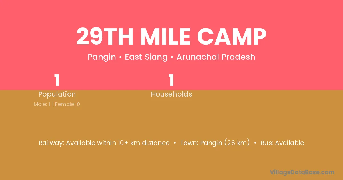 29th Mile Camp village has a total population of 1 people, of which 1 are males and 0 are females.