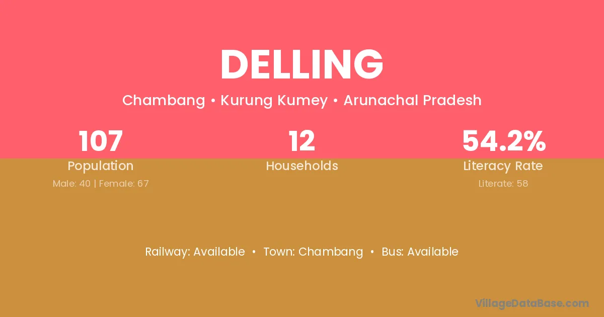 Delling village has a total population of 107 people, of which 40 are males and 67 are females.