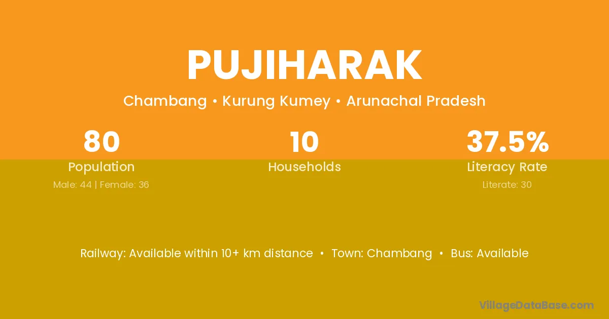 Pujiharak village has a total population of 80 people, of which 44 are males and 36 are females.