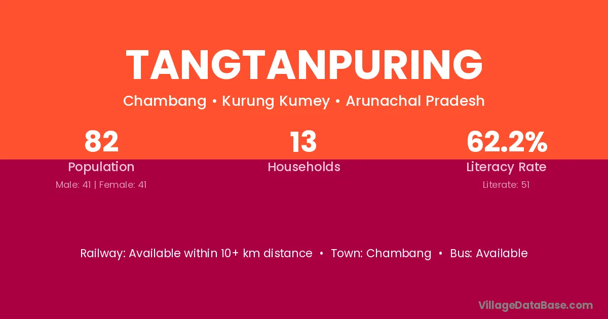Tangtanpuring village has a total population of 82 people, of which 41 are males and 41 are females.