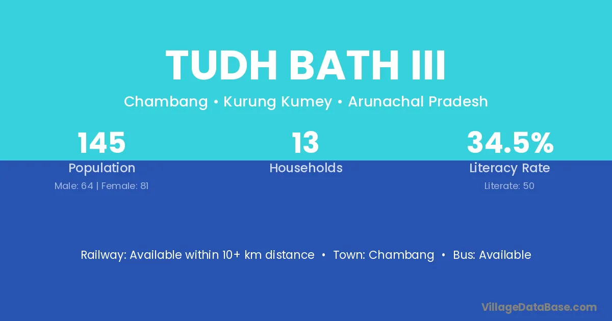 Tudh Bath Iii village has a total population of 145 people, of which 64 are males and 81 are females.