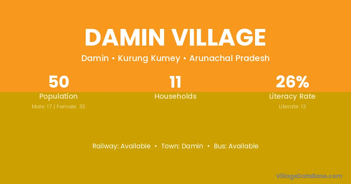 Damin Village village has a total population of 50 people, of which 17 are males and 33 are females.