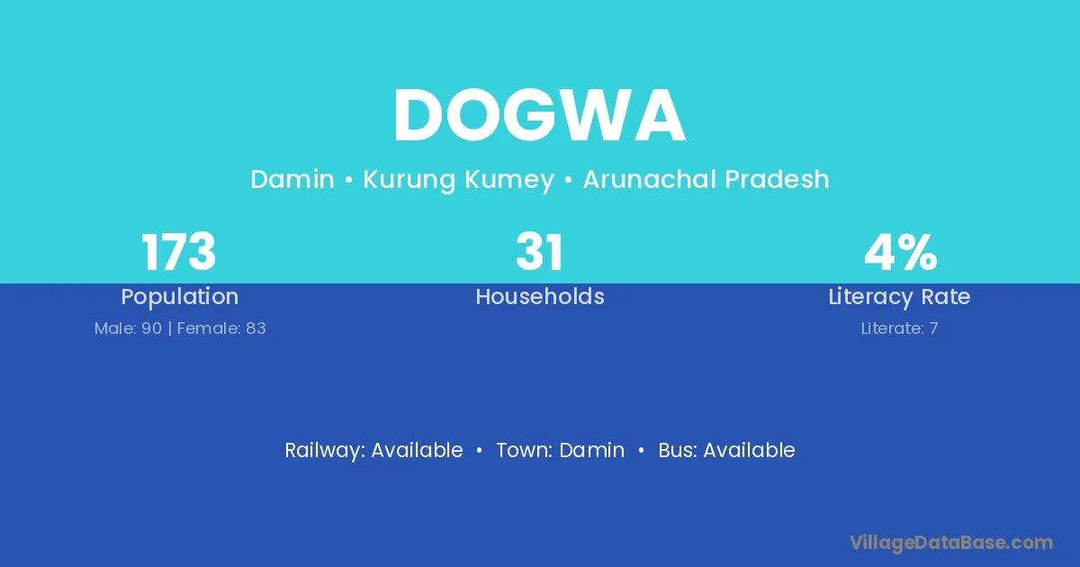 Dogwa village has a total population of 173 people, of which 90 are males and 83 are females.