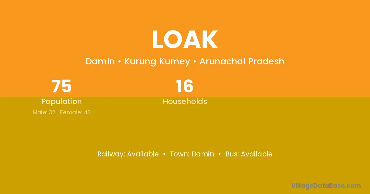 Loak village has a total population of 75 people, of which 32 are males and 43 are females.