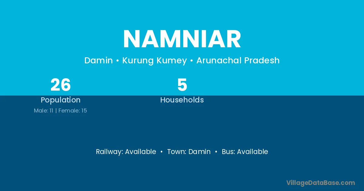 Namniar village has a total population of 26 people, of which 11 are males and 15 are females.