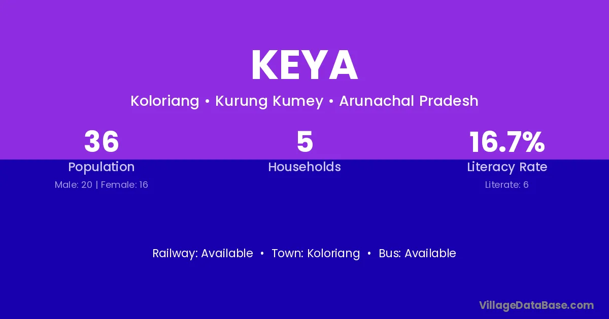 Keya village has a total population of 36 people, of which 20 are males and 16 are females.