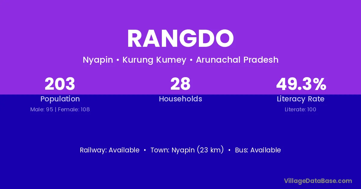 Nyapin (23 km) is the nearest town to Rangdo village for major economic activities and is located approximately 23 km away.
