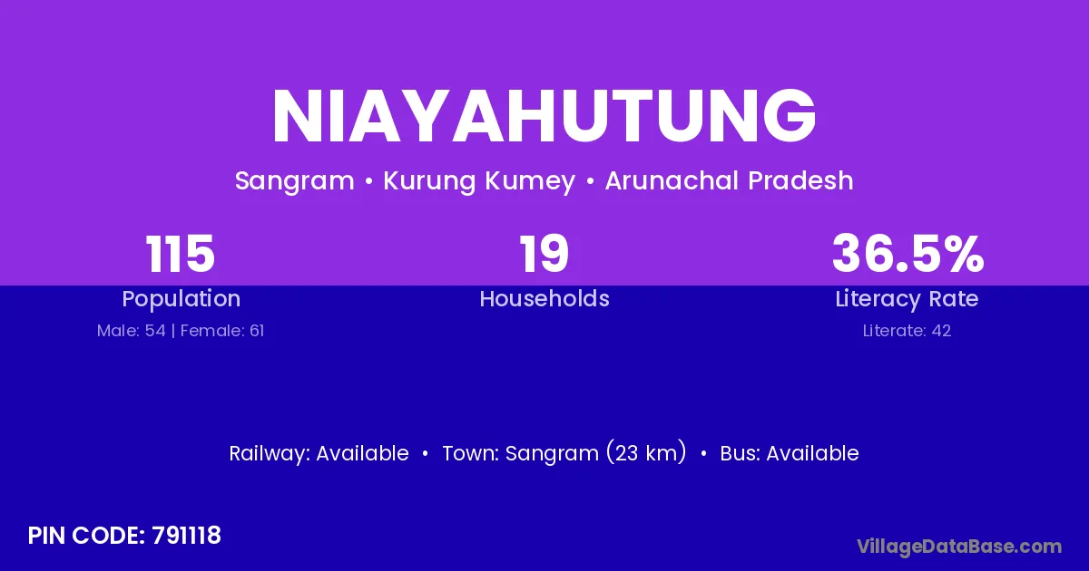 Sangram (23 km) is the nearest town to Niayahutung village for major economic activities and is located approximately 23 km away.