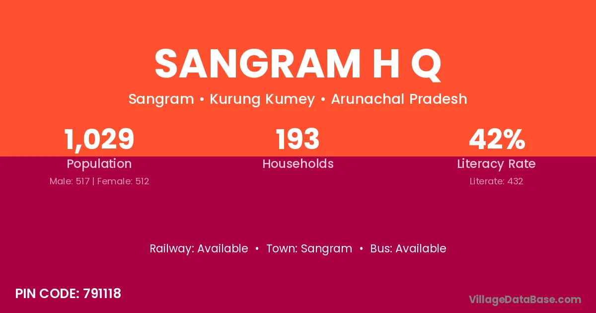 Sangram H Q village has a total population of 1,029 people, of which 517 are males and 512 are females.