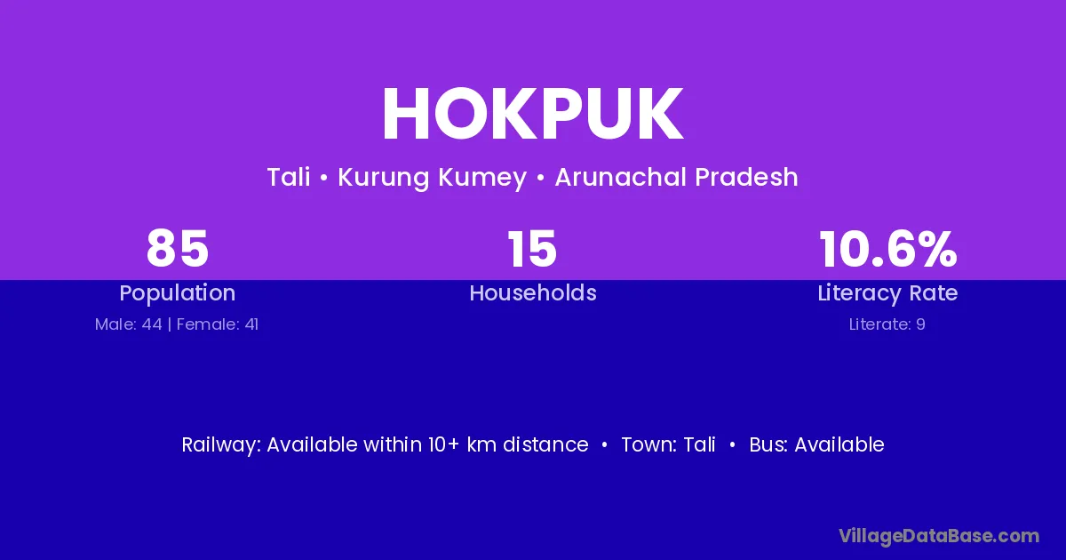 Hokpuk village has a total population of 85 people, of which 44 are males and 41 are females.