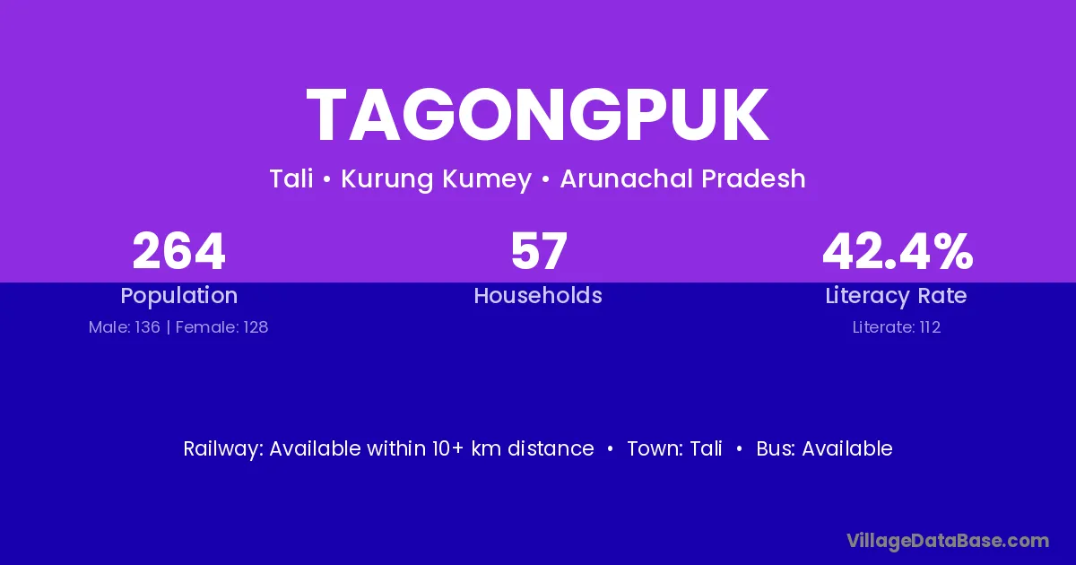 Tagongpuk village has a total population of 264 people, of which 136 are males and 128 are females.