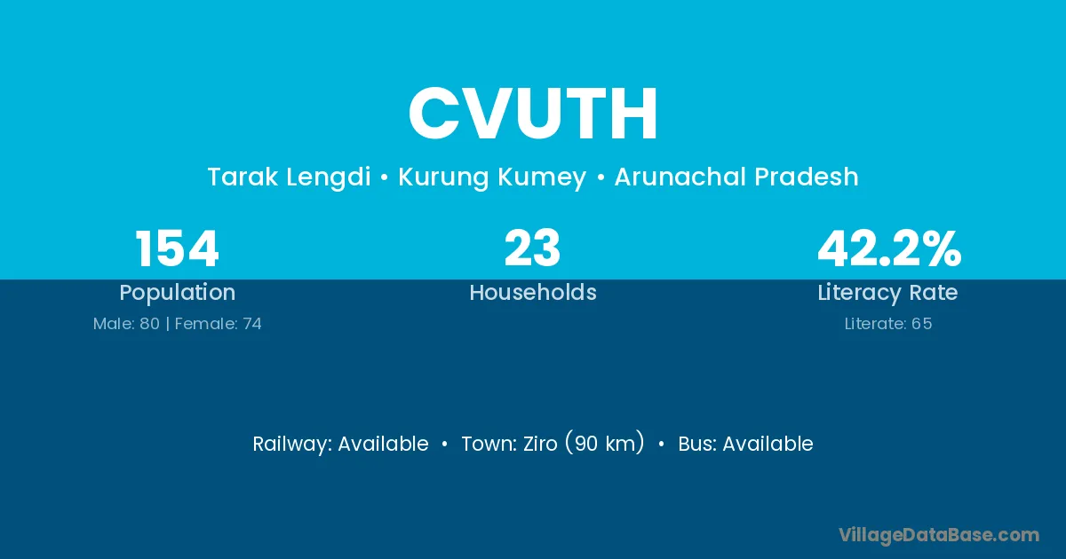 Ziro (90 km) is the nearest town to Cvuth village for major economic activities and is located approximately 90 km away.