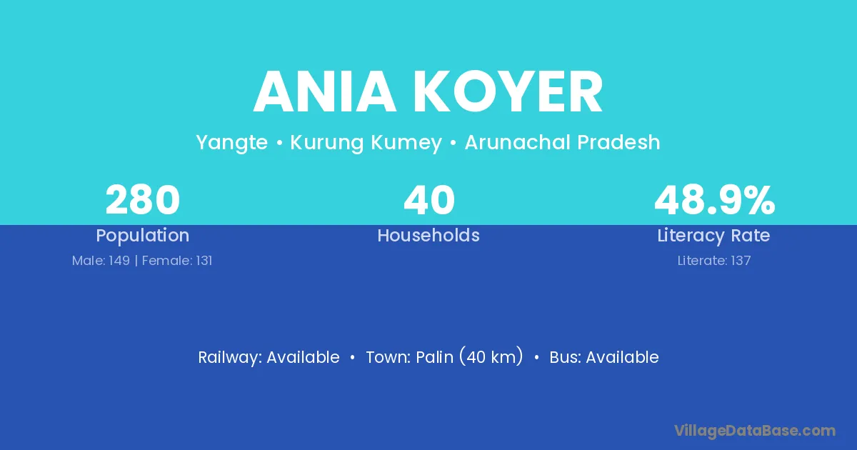 Ania Koyer village has a total population of 280 people, of which 149 are males and 131 are females.