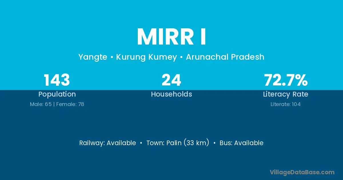Palin (33 km) is the nearest town to Mirr I village for major economic activities and is located approximately 33 km away.