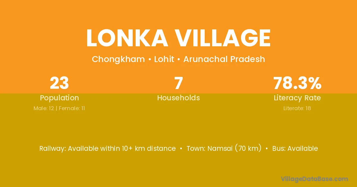 Lonka Village village has a total population of 23 people, of which 12 are males and 11 are females.