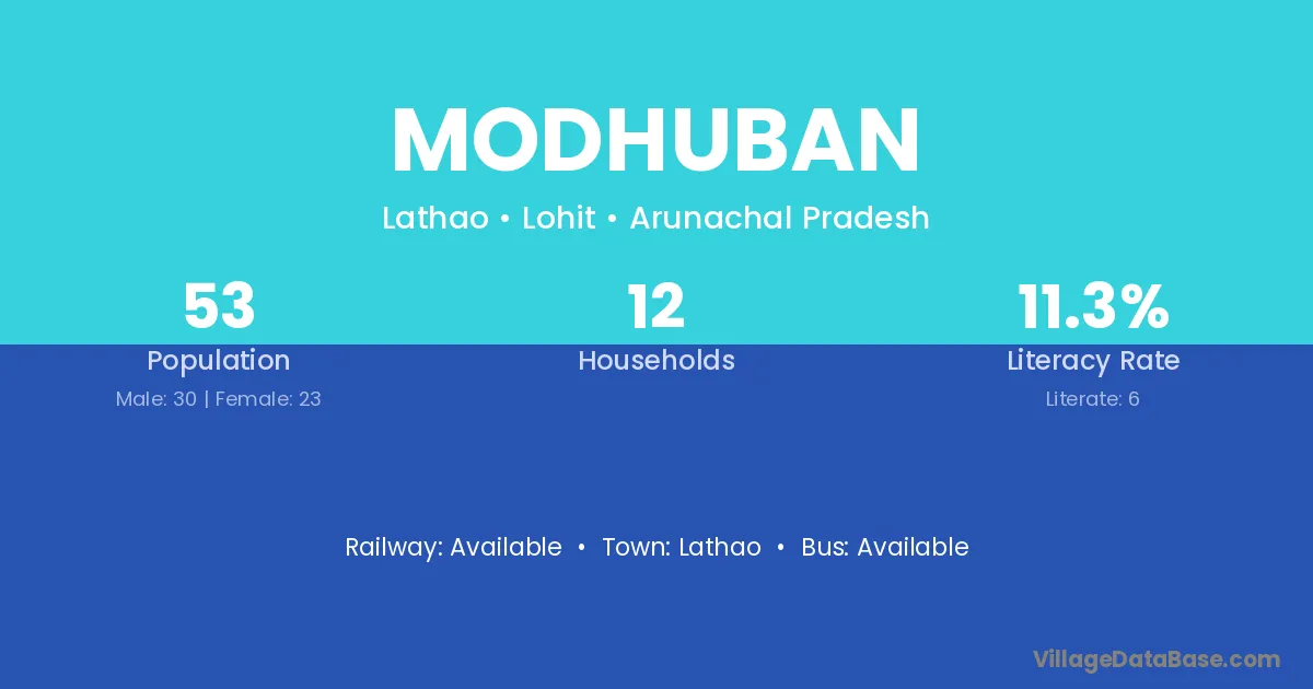 Modhuban village has a total population of 53 people, of which 30 are males and 23 are females.