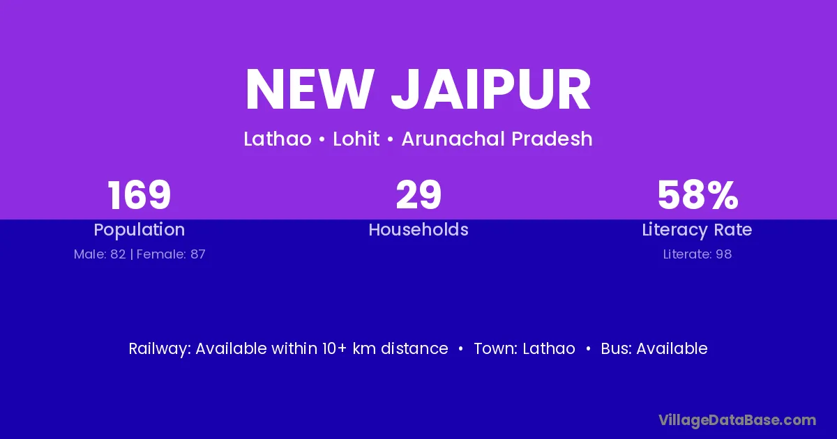 New Jaipur village has a total population of 169 people, of which 82 are males and 87 are females.