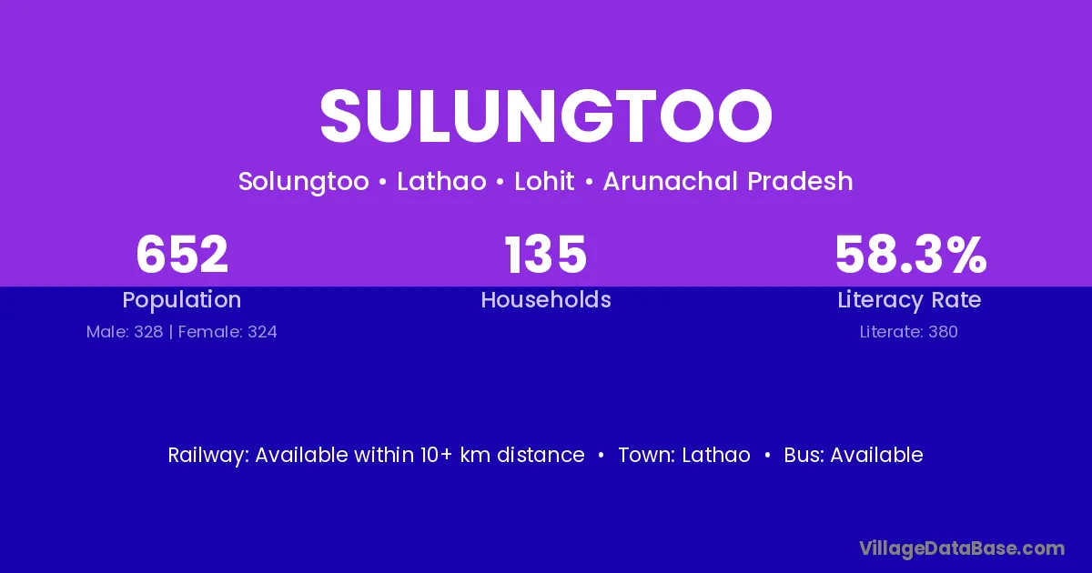Sulungtoo village has a total population of 652 people, of which 328 are males and 324 are females.
