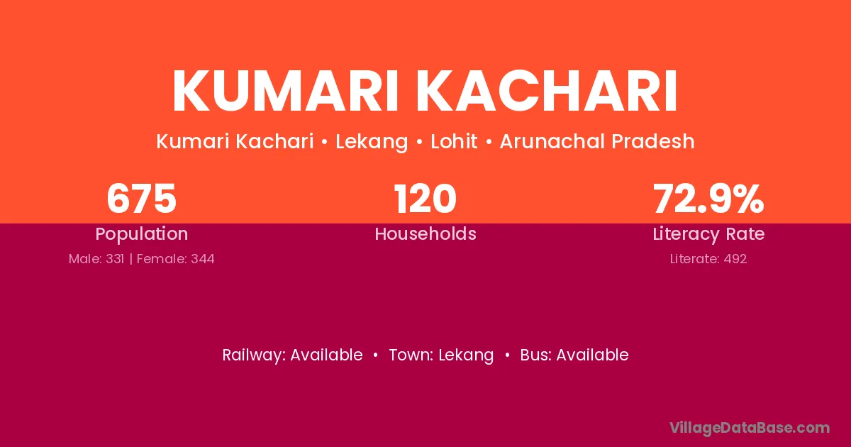 Kumari Kachari village has a total population of 675 people, of which 331 are males and 344 are females.