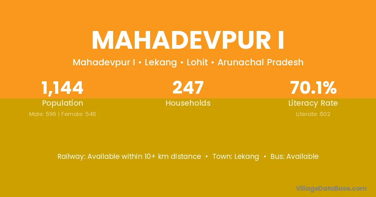 Lekang is the nearest town to Mahadevpur I village for major economic activities