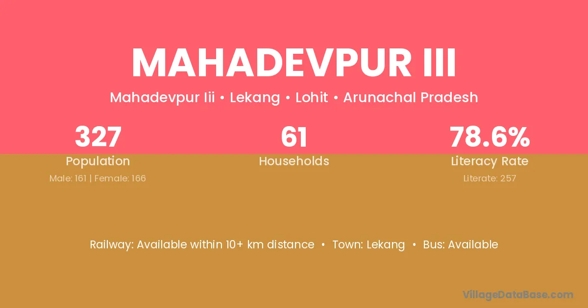 Mahadevpur Iii village has a total population of 327 people, of which 161 are males and 166 are females.