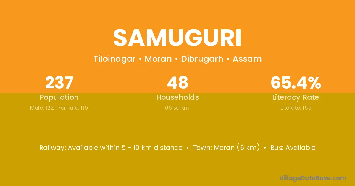 Samuguri village has a total population of 521 people, of which 262 are males and 259 are females.