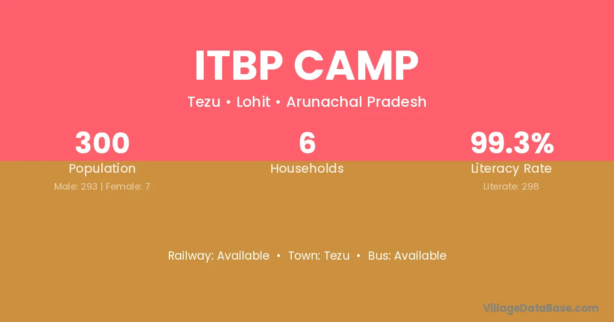 Itbp Camp village has a total population of 300 people, of which 293 are males and 7 are females.