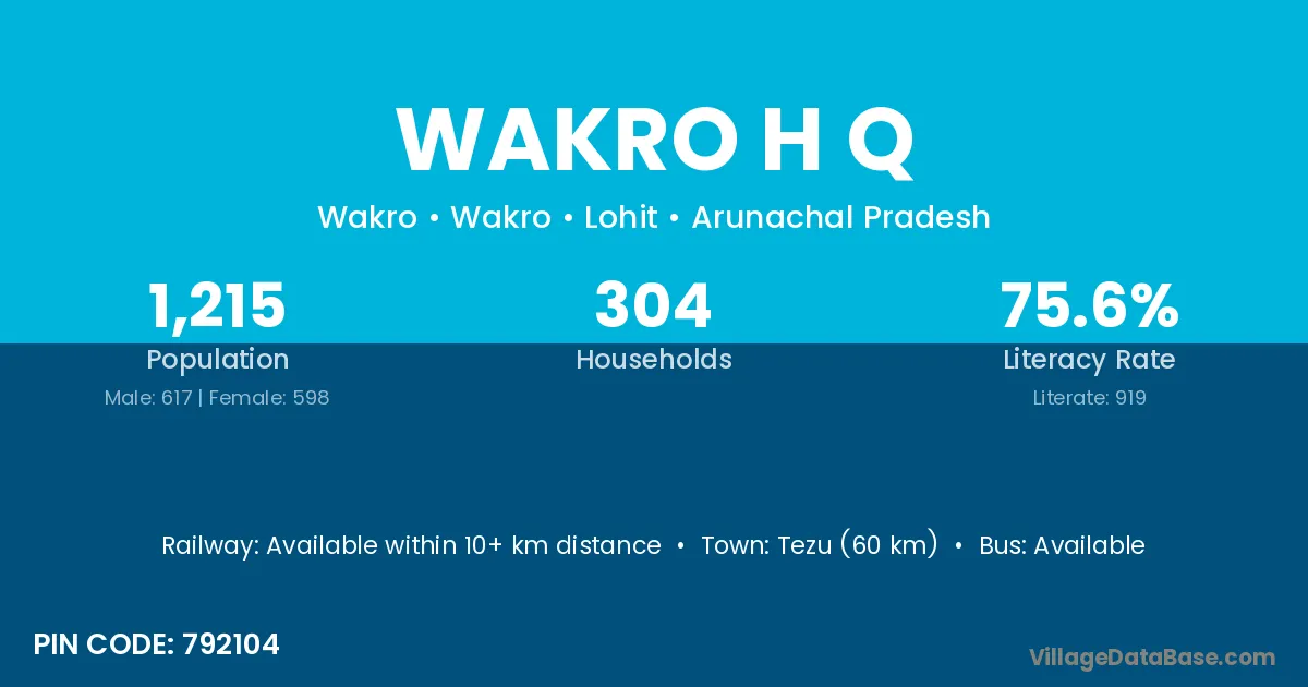 According to Census 2011 information, the village code of Wakro H Q village is 792104.