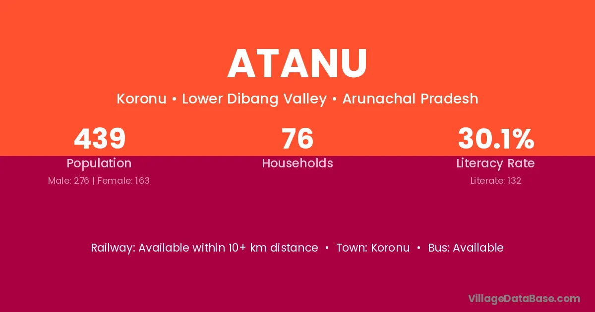Atanu village has a total population of 439 people, of which 276 are males and 163 are females.