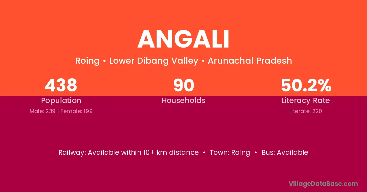 Angali village has a total population of 438 people, of which 239 are males and 199 are females.