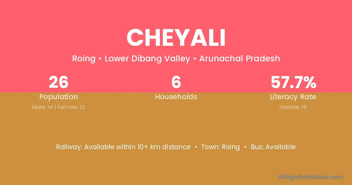 Cheyali village has a total population of 26 people, of which 14 are males and 12 are females.