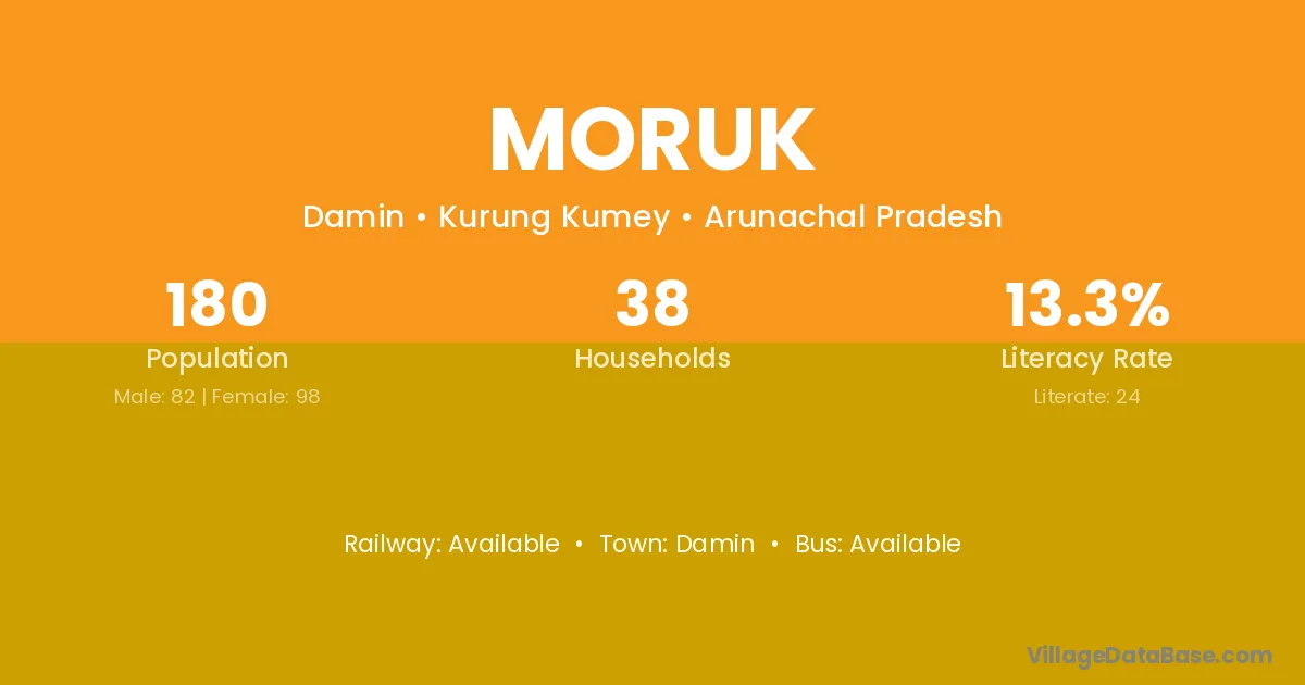 The literacy rate of Moruk village is 52.17%. Male literacy stands at 61.54% and female literacy at 40.00%.