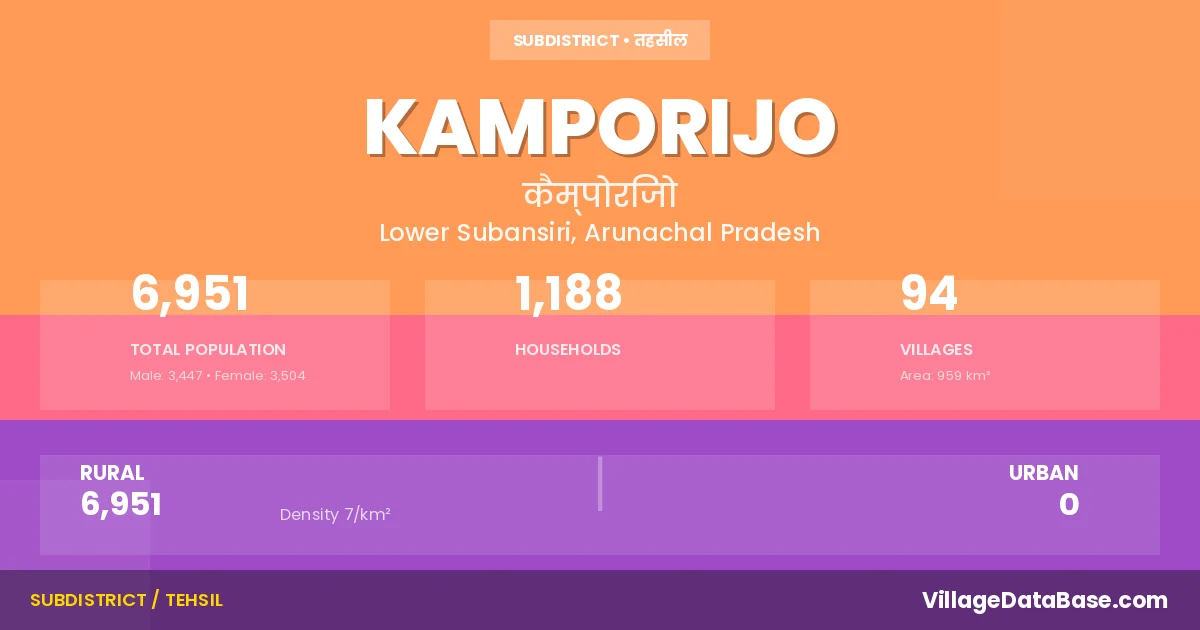 Kamporijo Circle comprises about 94 villages. Below is a list of these villages along with information about their respective gram panchayats and the nearest town: