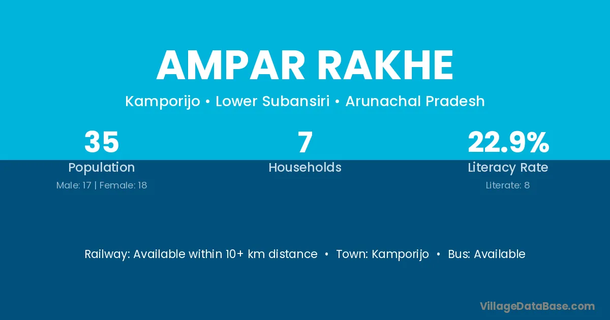 Ampar Rakhe village has a total population of 35 people, of which 17 are males and 18 are females.