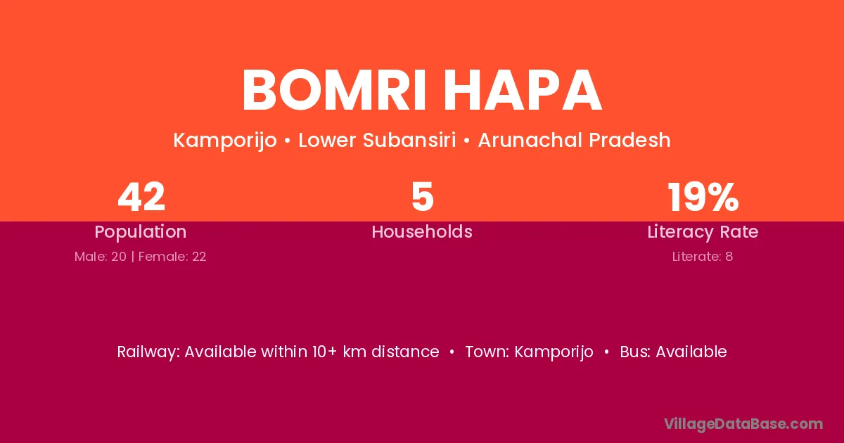 Bomri Hapa village has a total population of 42 people, of which 20 are males and 22 are females.