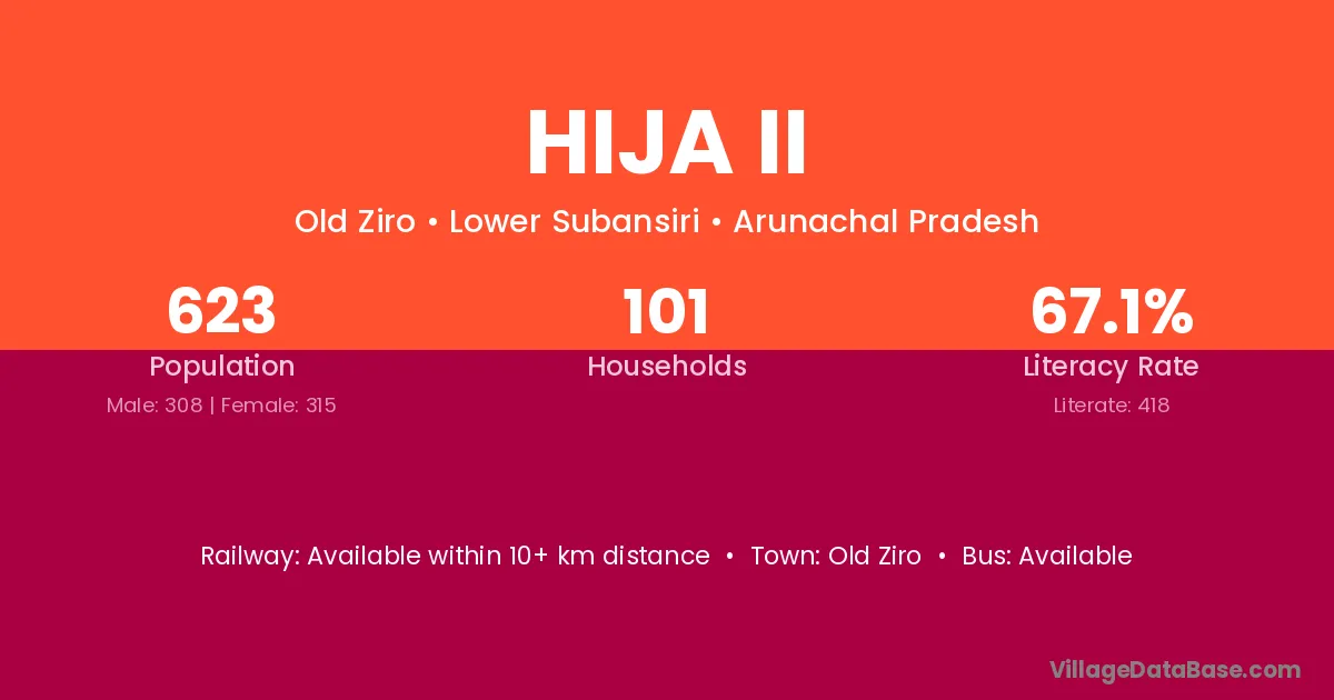 Hija Ii village has a total population of 623 people, of which 308 are males and 315 are females.