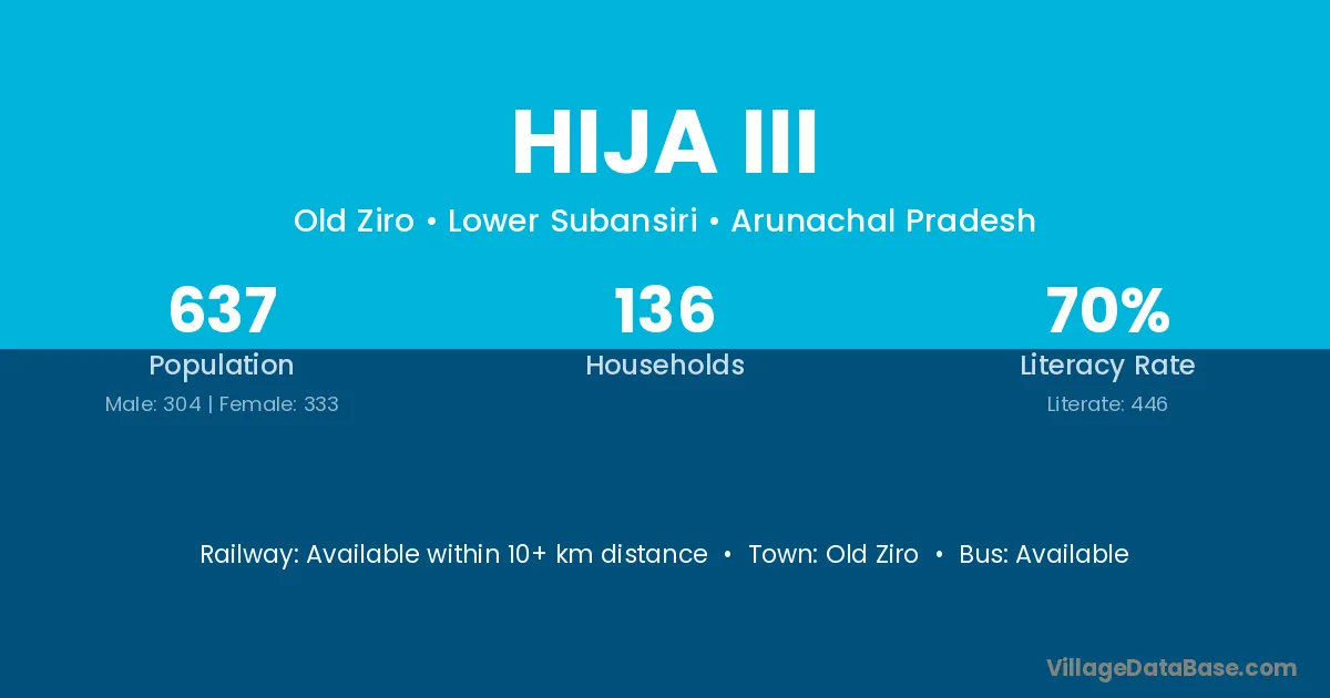 Hija Iii village has a total population of 637 people, of which 304 are males and 333 are females.