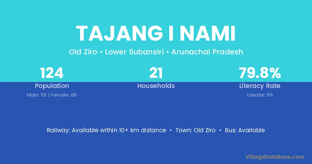 Tajang I Nami village has a total population of 124 people, of which 56 are males and 68 are females.