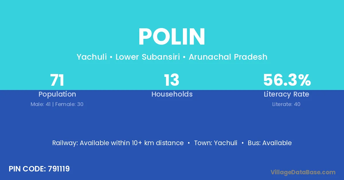 Polin village has a total population of 71 people, of which 41 are males and 30 are females.