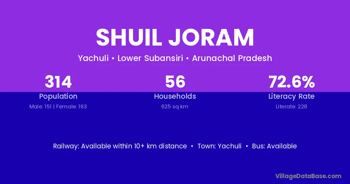 Shuil Joram village has a total population of 314 people, of which 151 are males and 163 are females.