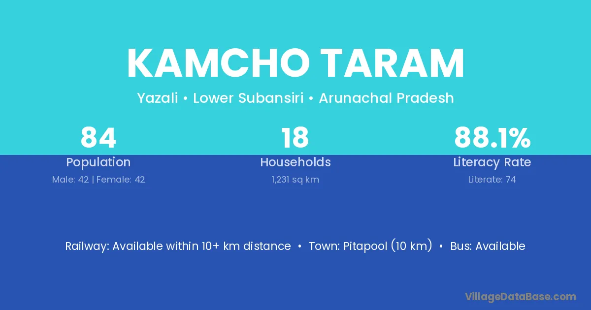 Kamcho Taram village has a total population of 84 people, of which 42 are males and 42 are females.