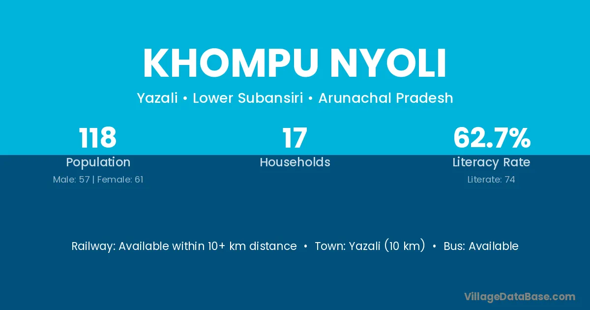 Khompu Nyoli village has a total population of 118 people, of which 57 are males and 61 are females.