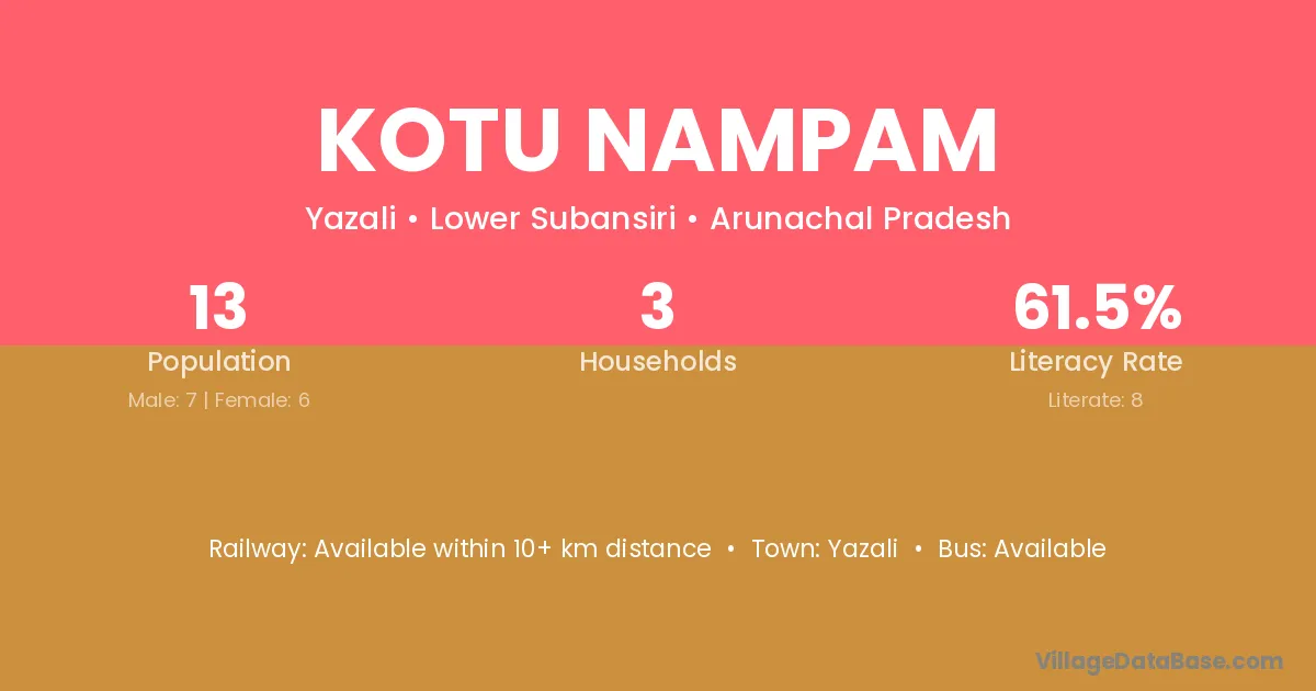 Kotu Nampam village has a total population of 13 people, of which 7 are males and 6 are females.