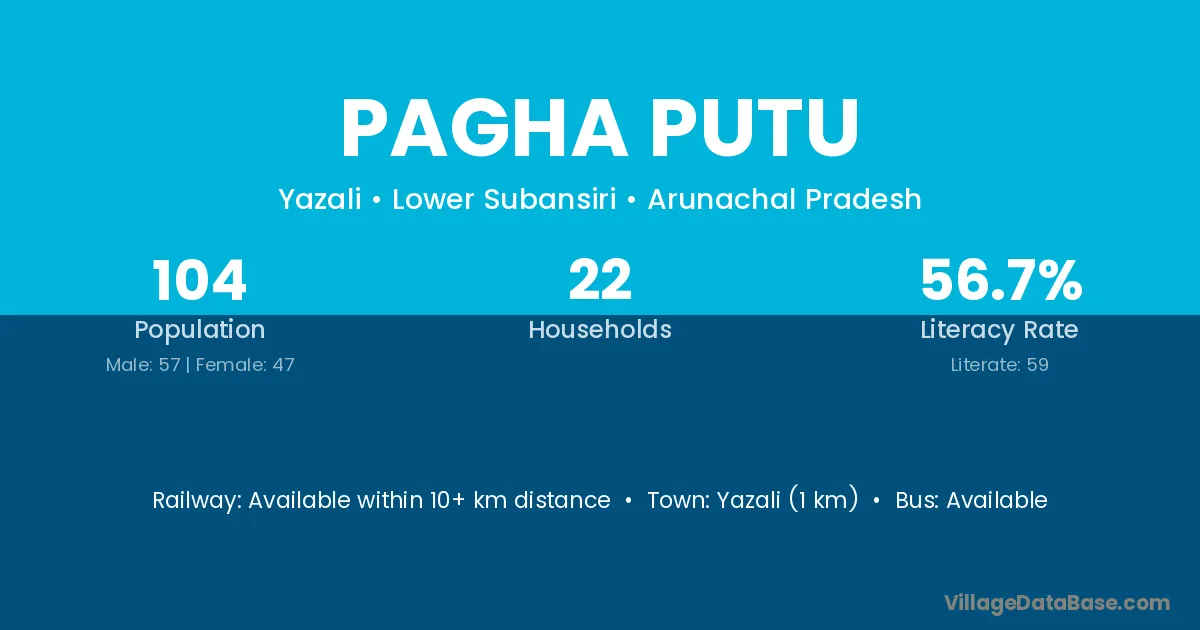 Pagha Putu village has a total population of 104 people, of which 57 are males and 47 are females.