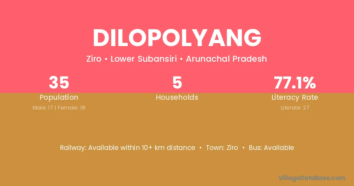 Dilopolyang village has a total population of 35 people, of which 17 are males and 18 are females.