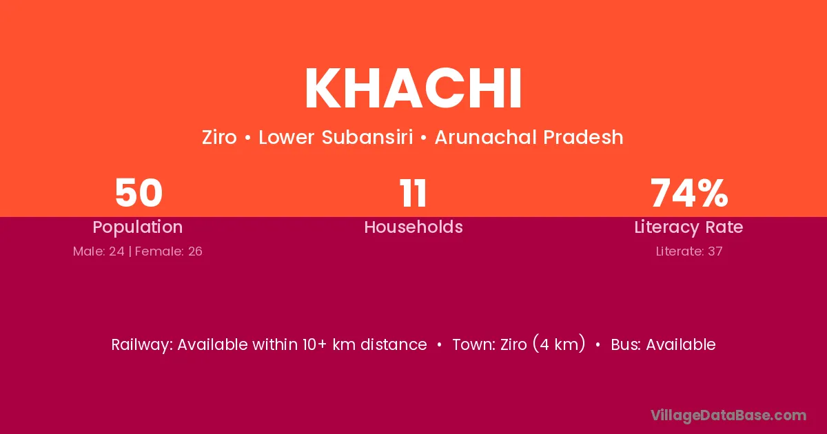 Khachi village has a total population of 50 people, of which 24 are males and 26 are females.